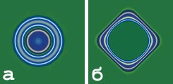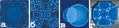 Рис. 17. Воздействие параметра «Движение жидкости»: а — минимальное значение параметра; б — максимальное значение параметра |
