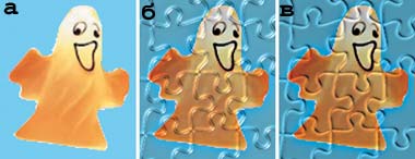 Используйте изображение симпатичного привидения (рис. 8, а), чтобы создать логическую головоломку Puzzle. Для этого вызовите фильтр KPT Materializer, наложите на рисунок текстуру Puzzle, а затем щелчком на средней кнопке расположения источников установите их в стандартную позицию (рис. 8, б).