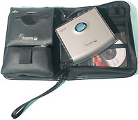 Сразу поразила комплектация этого диска — удобный чехол-барсетка из кожзаменителя, в отдельных кармашках которого находились собственно диск в весьма стильном корпусе, мини-CD с драйверами и инструкцией, соединительный кабель и короткий переходник на два порта USB (его назначение не совсем понятно). Внешнее питание не понадобилось, но соответствующие гнезда в корпусе есть. Сетевой блок приобретается отдельно.