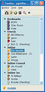 | Exodus — один из самых популярных клиентов Jabber для платформы Windows |