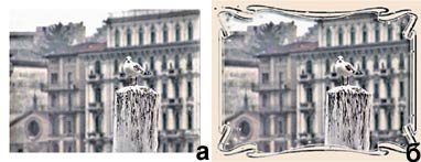 Я использовал всего лишь один из предоставляемых фильтром шаблонов, немного его подкорректировав. Точнее, я убрал лишнюю текстуру и изменил окраску рамки (рис. 16, б).