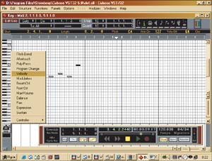 Получив таким образом некий шаблон мелодии, необходимо задать акценты для каждой из нот. Это можно сделать с помощью контроллеров. Нажмите кнопку вызова контроллера (большая кнопка слева внизу) и выберите пункт Velocity (скорость удара по клавишам, рис. 8).