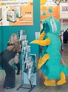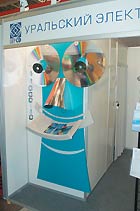 | Стенд Уральского электронного завода УЭЗ по-прежнему украшают компакт-диски различных типов. По мнению представителей этого предприятия, в ближайший год в России переноса фокуса покупательского спроса на DVD-диски не ожидается. Тем не менее диски DVD-R производства УЭЗ с четырехкратной скоростью записи уже в продаже. |