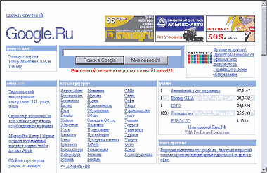 Гордостью коллекции Гледенова по праву может считаться Google.ru, зарегистрированный Денисом в 2001 г. По какой-то причине компания Google пока не предъявила претензию на этот домен, а российская версия известной поисковой машины скромно ютится по адресу www.google.com.ru. Впрочем, Гледенов оказался хаппером благородным: по адресу www. google.ru вы увидите форму для поиска. Запрос честно перенаправляется на основной сайт этой известной поисковой машины.