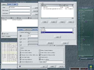Чтобы воспользоваться системой ICQ, нужно зарегистрироваться на сайте www.icq.com и получить индивидуальный номер; по нему-то в дальнейшем вас и будут идентифицировать. Для работы с ICQ необходим специализированный клиент, который получает и отображает оперативные данные о том, кто в данный момент подключен к системе, т. е. находится в режиме on-line. Использование Web-браузера хотя и возможно (на www.icq.com есть такой интерфейс), но в нем трудно отследить, подключен ли человек к системе. Для Linux есть специализированный клиент ICQ, который называется Licq, имеющий все необходимые функции для работы по этому протоколу. В дистрибутивах также поставляется более общий клиент gaim, написанный на GTK+ и работающий не только с ICQ, но и с множеством других аналогичных систем: AIM, MSN, Yahoo! и др. Более скромными возможностями обладает Kit, который входит в пакет KDE и является клиентом только для AOL Instant Messanger (AIM). Так что в Linux есть все возможности для сетевого разговора с пользователями Интернета по всему миру.