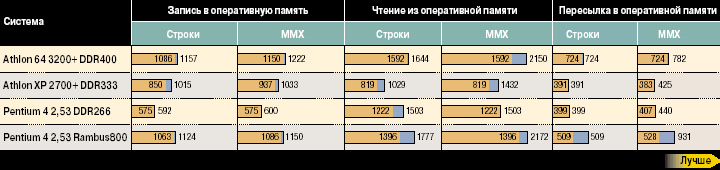 Диаграмма 2. Скорость обмена при последовательном доступе к ОЗУ, Мбайт/с