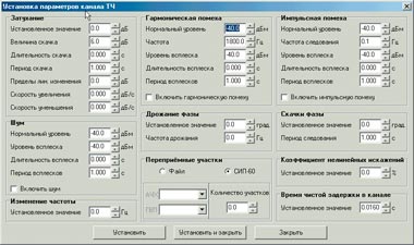 | Рис. 2. Экран управления параметрами имитатора коммутируемого канала |