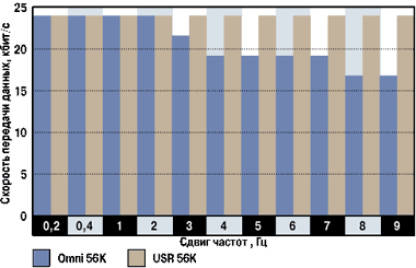 | Диаграмма 4.Скорость передачи модемов в зависимости от сдвига частот |