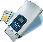 На этот раз получился Dynamo 640 Photo, позволяющий копировать информацию с флэш-карт на МО-дискеты и обратно; предусмотрено и подключение к ПК по интерфейсу USB 2.0. Для внешнего накопителя габариты и масса у него несколько велики (180х114х38 мм, 570 г) — в карман уже не сунешь, но в небольшой барсетке (или в ноутбучной сумке) он разместится. Однако мобильность пострадала не из-за этого, а из-за необходимости внешнего электропитания.