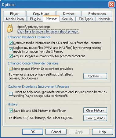 Досадное обстоятельство. Я был огорчен, обнаружив, что проигрыватель Windows Media использует уникальные идентификационные номера для обмена информацией обо мне с сайтами.