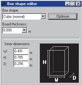 К вычисленным габаритам ящика нужно добавить объем реек и брусков, которыми укрепляются стенки корпуса, а также объем заливаемой туда мастики. Введя в WinISD толщину стенок и нажав Optimal, вы получите готовые размеры деталей.