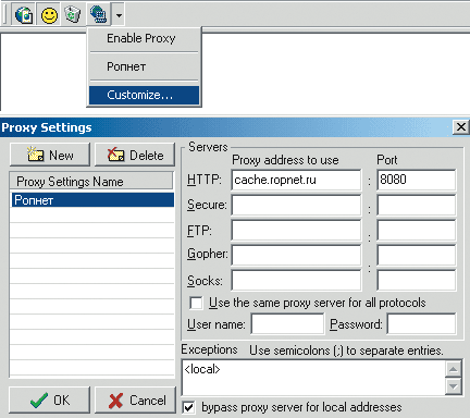 Дополнение VDBand. Прокси-сервер устанавливается одним нажатием кнопки