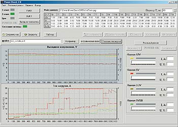 На завершающей стадии экспериментов нам помог прибор PowerCheck2 Plus, разработанный группой компаний «Формоза» (http://www.formoza.ru/ press/release/323.html) специально для исследования работы БП для ПК. Это устройство позволяет измерять напряжения (+12 В, +5 В, +3,3 В, +5 Vsb) при подключенном эквиваленте нагрузки. PowerCheck в автоматическом режиме изменяет значения выходных токов БП в течение равных промежутков времени и следит за возможными отклонениями напряжений, распределяя устройства по классам (1, 2 и брак).