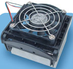 Овальный радиатор этого охладителя выполнен из алюминия (темно-серого цвета). Вентилятор прикрепляется к гнезду процессора и с помощью специального рычага «досылается» на радиатор, что обеспечивает надежное крепление. Тихим его не назовешь — вентилятор работал очень шумно с довольно странным свистящим звуком.