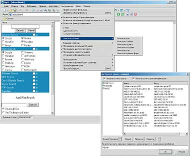 В MyIE есть и дополнительные функции, например команды быстрого удаления всех временных файлов Интернета и файлов идентификации — cookies (см. рис. 5); заметно модифицированная панель обозревателя «Поиск», помогающая легко найти нужную информацию посредством более чем двух десятков поисковых систем, в том числе системы поиска музыкальных файлов и программ; подпрограмма очистки загружаемых страниц от рекламы, перед использованием которой следует указать адреса тех сайтов, откуда вся эта реклама берется. Кроме того, MyIE предоставляет множество мелких, но полезных удобств для работающего: скажем, в специальном окне можно отобразить список всех гиперссылок на веб-странице или открыть ошибочно закрытое окно.