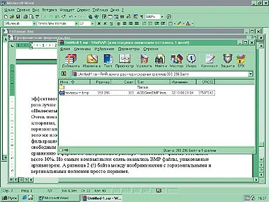 Как и следовало ожидать, в данном случае формат JPEG с подобранным экспериментальным путем качеством в 70% намного опередил конкурентов. При минимальной потере качества сжатие более чем в 25 раз достойно похвалы. Причем отличия между оригиналом и сжатым файлом можно заменить, только если сильно увеличить изображение. PNG справился с задачей намного хуже. Последним пришел к финишу универсальный алгоритм сжатия информации, реализованный в программе WinRAR 3.20, который был включен в тест из любопытства.