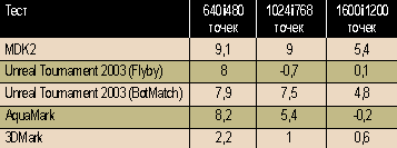 В таблицах представлены результаты, отражающие разницу в процентах производительности систем на различных процессорах (положительные цифры соответствуют большей производительности более высокочастотного Athlon FX).