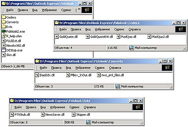 Программа Fidolook — это бесплатная утилита-дополнение к Microsoft Outlook Express, разработанная русскими программистами. Она включает набор библиотек, т.е. файлов с расширением .dll, которые хранят подпрограммы, вызываемые из других программ, а также исполняемый файл (рис. 1). Переписать программу можно с сайта http://www.fidolook.com.