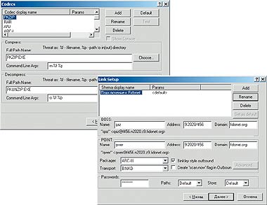 | Рис. 7. Окна настройки модуля связи с Fidonet |
