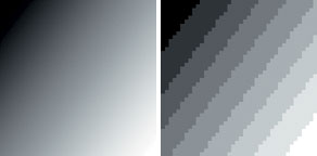 | Рис. 2. Артефакты при сжатии изображения с плавными градиентами: а — оригинал, б — после сжатия |