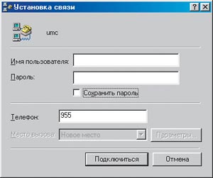 Для того чтобы выйти в Сеть, выберите вновь созданное соединение, в появившемся окошке введите логин и пароль, а затем нажмите «Подключиться» (рис. 2). В течение нескольких секунд произойдут дозвон и соединение.
