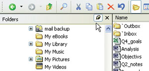 | Рис. 1. Открывайте и скрывайте волшебное дерево папок с помощью изображения канцелярской кнопки под стандартной панелью инструментов |