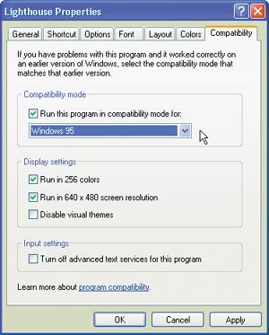 | Рис. 6. Старые приложения никогда не умрут и даже не потускнеют, если вы будете запускать их в режиме совместимости с соответствующими ОС |