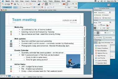 Так, Project Center, новый компонент приложения Entourage, позволяет организовать документы, электронные письма и файлы по признаку принадлежности к какому-либо проекту. В текстовом процессоре Word появился режим отображения страницы Notebook («Блокнотный»), с помощью которого удобно записывать заметки и звуковые комментарии. Еще один режим, Page Layout («Разметка страницы»), добавился и в Excel. В нем таблица видна так, как она будет выглядеть в распечатке — со всеми отступами и колонтитулами. Кроме того, в комплект добавлена функция Scrapbook («Альбом»), служащая для организации быстрого доступа к часто используемым объектам, таким как фрагменты текста, картинки и т.п. Наконец, в Office 2004 for Mac вошли средства проверки совместимости документов с другими версиями офисных приложений Microsoft — как для Mac OS, так и для Windows.