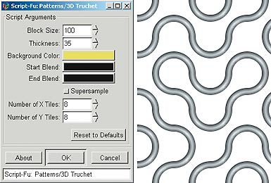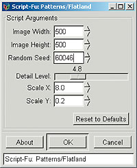 В общем меню есть только одно субменю для генерации текстур — Xtns?Script-Fu?Patterns. Аббревиатура Script-Fu означает, что генераторы написаны на языке сценариев. А из этого следует, что особо высокой производительности ожидать от них не стоит. Зато можно просмотреть исходный текст сценария и на его основе написать свой, что также немаловажно.