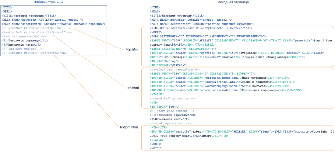 Использование директивы include для создания шаблона документа