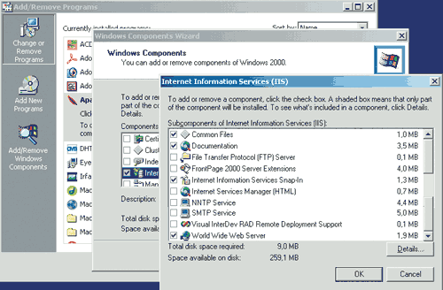 Выбор компонентов Internet Information Services 5 (IIS 5) для установки