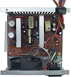 Внимательные читатели нашей предыдущей статьи «Блоки питания: шок и трепет» наверняка помнят замечание о том, что приличных 300-Вт БП легче 1,5 кг в природе просто не бывает. Так вот, масса этой модели меньше 1 кг, а если заглянуть под крышку, то на местах некоторых компонентов можно увидеть простые проволочные перемычки. Чудеса, да и только — этот БП с наклейкой Ростеста не оснащен даже входным фильтром.