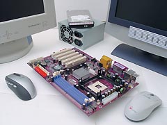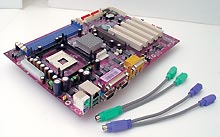 Внешне эта плата ничем не отличается от других: она выполнена из сиреневого текстолита, северный мост построен на базе набора микросхем VIA P4X400, защищенного от перегрева алюминиевым радиатором. На плате присутствуют три разъема, предназначенные для установки памяти типа DDR-266 или DDR-333 общим объемом до 3 Гбайт.