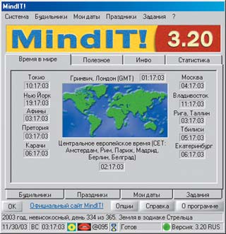 Эту программу я отнес бы к классу «всего понемногу», на органайзер она вряд ли тянет. В задачи MindIT входит обслуживание скорее потребностей компьютера, нежели его владельца. И тем не менее я не смог обойти ее стороной, поскольку набор функций, имеющихся в MindIT, наверняка многим из вас покажется интересным.