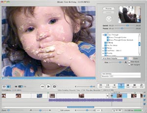 Интерфейс iMovie улучшен. Проигрывание видео начинается почти сразу после щелчка на соответствующей кнопке — раньше это происходило с запаздыванием. Но инженеры Apple повысили также скорость рендеринга, добавления спецэффектов, переходов между сценами, благодаря чему пользователю больше не придется тратить время, ожидая, пока программа выполнит то или иное действие. Кроме того, для ускорения работы в iMovie?04 добавлено несколько новых функций. В частности, на временн?ой шкале теперь можно одновременно выделять несколько несмежных клипов. А если вам, скажем, нужно сделать все переходы однотипными и длящимися на секунду дольше, то для этого понадобится всего пара щелчков мыши. Затем iMovie?04 автоматически выполнит рендеринг с учетом новых установок.