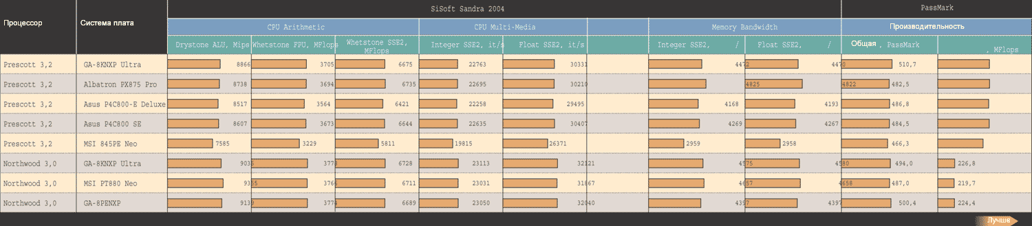 Результаты тестов SiSoft Sandra 2004 и PassMark