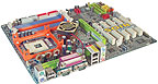 Разгон возможен довольно своеобразный — кроме значения по умолчанию и ручной настройки есть еще четыре установки: +5%, +10, +20 и +30%. Частота памяти также выбирается из трех фиксированных значений, а напряжение на ядре процессора можно изменять в диапазоне 1,375—1,950 В с шагом 25 мВ. Дискретность установки напряжения памяти — 50 мВ против 100 мВ у большинства других плат. Точность измерения температуры также вдвое выше, чем у плат других производителей, — 0,5 ?С. Кстати, любопытно, что при работе на частоте 3,2 ГГц и при стандартном напряжении питания температура процессора Prescott на «холостом ходу» не поднималась выше 60 ?С. Кроме того, предусмотрен разъем для подключения температурного контроля источника питания, так что если ваш БП поддерживает такую функцию, ее можно использовать.