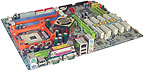 Плата оснащена всем, чем только возможно, — тут и технология резервирования DualBIOS, и дополнительный стабилизатор питания, шесть гнезд DIMM, стандартный контроллер ATA UDMA 100 на четыре устройства, дополнительный RAID-контроллер ATA 133 на четыре устройства (RAID 0, 1, 0+1), контроллер Serial ATA-150 на два устройства, два разъема UW-SCSI-320 (четыре диска и массив на канал), разъем AGP Pro, гигабитовый сетевой контроллер. Единственное, чего не хватает, так это интерфейса IEEE 1394. Но такое изобилие имеет и свои недостатки — приходится расплачиваться длительным процессом первоначальной загрузки.