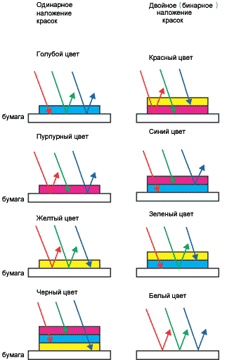 | Рис.3 и 4. Разложение на цвета и печать изображения |
