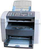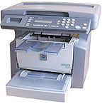 Разрешение протяжного черно-белого сканера составляет 200х400 тнд, принтера — 600х600 тнд. Время выхода первой страницы при печати — 45 с, скорость печати — 5 стр./мин, время копирования одной страницы — около 1 мин. Качество отпечатков получается заметно хуже, чем на обычном лазерном принтере с таким же разрешением, а качество копий уступает даже обеспечиваемому простейшим копиром. Такой аппарат вряд ли можно назвать полноценным МФУ, ведь его функции сканирования, копирования и печати по скорости и качеству никоим образом нельзя считать заменителями функций соответствующих устройств. Да и постраничный принцип не позволяет отсканировать или скопировать ни книгу, ни журнал, предварительно не разорвав их на отдельные листы. Поэтому производитель на своем сайте справедливо относит это устройство не к группе МФУ, а к группе цифровых факсов, так как по сути оно и является прежде всего факсом, обладающим функциями печати, сканирования и копирования. Данная модель отличается от аналогов, выпускаемых другими производителями, большим ресурсом картриджа, рассчитанным на 6 тыс. стр. (стартовый — 3 тыс. стр.) и низкой себестоимостью отпечатка. К сожалению, отсутствуют USB-порт, драйверы для Windows XP и руководство для пользователя на русском языке.