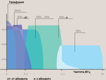 | Семейство xDSL-стандартов в интерьере медной витой пары |