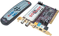 Дизайн этого устройства радует глаз — выполненная на темно-малиновом текстолите плата выделяется продуманностью компоновки. Несмотря на то что на золотистую заднюю планку выведены разъемы аудиовхода и выхода, на самой плате предусмотрены их дублеры, предназначенные для «внутреннего» подключения звукового тракта. В качестве радиоблока применен Philips TCL2002MB-33F, а роль декодера выполняет SAA 7134HL с поддержкой стереозвука. Комплект можно назвать стандартным: полноразмерный пульт ДУ, ИК-датчик, FM-антенна, шнурок для внешнего соединения со звуковой платой, русскоязычная инструкция по установке и два диска с ПО, включающие «фирменные» программы от GOTVIEW, а также WinDVR и WinDVD creator производства компании interVideo.