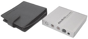 Это миниатюрное устройство размером с трехдюймовую дискету позиционируется производителем для работы с ноутбуком, что подчеркивается его комплектацией — пульт ДУ не предусмотрен. Зато есть очень симпатичный кожаный чехол, предохраняющий металлизированный корпус от появления повреждений и царапин, неизбежных во время переноски. Кроме того, в коробке находятся три диска с ПО: Ulead DVD MovieFactory SE, Ulead VideoStudio 7 SE DVD и русифицированные фирменные программы от AVerMedia. Не забыта и печатная инструкция по установке, в которой помимо английского есть и русский перевод, а в самом нижнем отсеке мягкой упаковки были найдены три соединительных кабеля: USB, аудио и переходник для антенны.