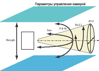 В нашем распоряжении команда Height («Высота»), от которой зависит позиция камеры относительно линии горизонта. Обратите внимание на синюю метку горизонта, помогающую ориентироваться (рис. 2, ползунок Height слева от окна предварительного просмотра). Если поднять ползунок выше этой метки, то камера будет расположена над линией горизонта, если поместить ниже, то под ней. Команда Yaw («Горизонтальное отклонение») разворачивает камеру влево или вправо, а команда Pitch («Вертикальное отклонение») — вверх или вниз. Команда Roll («Вращение») поворачивает камеру на 180?. Наконец, команда FOV (Field of View, «Область видимости») изменяет фокусное расстояние камеры, приближая или отдаляя объекты «съемки».