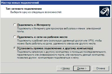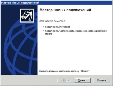 1. Выберите «Пуск->Панель управления», затем дважды щелкните мышью на значке «Сетевые подключения». В группе «Сетевые задачи» отметьте ссылку «Создание нового подключения» и нажмите кнопку «Далее». 2. Отметьте вариант «Подключить к сети на рабочем месте» и нажмите кнопку «Далее».