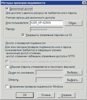 6. В группе «Анонимный доступ и проверка подлинности» нажмите кнопку «Изменить». В диалоговом окне «Методы проверки подлинности» (рис. 4) включите функцию «Анонимный доступ» и дважды щелкните на ОК.