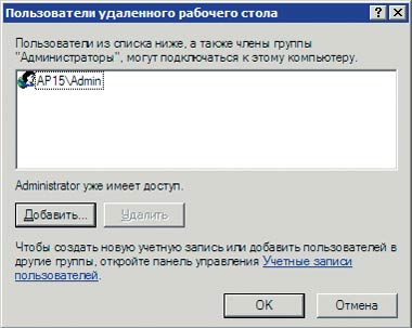 В диалоговом окне «Пользователи удаленного рабочего стола» (рис. 6) нажмите кнопку «Добавить».