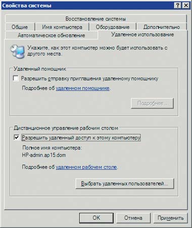 | Рис. 5. Окно «Свойства cистемы», закладка «Удаленное использование» |