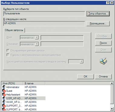 9. Для задания области поиска в диалоговом окне «Выбор: Пользователи» (рис. 7, 8) щелкните на кнопке «Дополнительно».