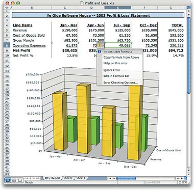 На первый взгляд в Excel мало что изменилось, но знакомый внешний вид обманчив: за ним скрываются существенные функциональные исправления. Как и в остальных приложениях Office 2004, в Excel имеется значок Toolbox, открывающий доступ к менеджеру Project Center. С его помощью, помимо прочего, можно проверить совместимость документа с другими версиями Office и открыть утилиту Scrapbook, сохраняющую графику и текст, перемещаемые между программами Office.